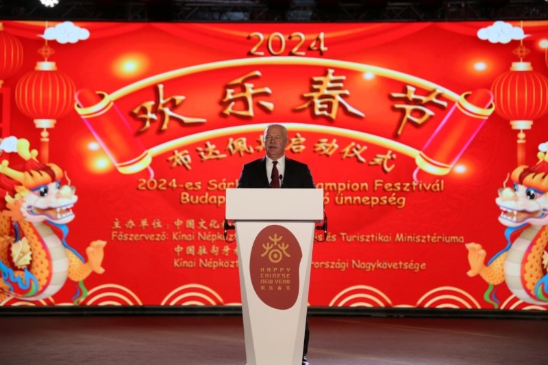 龔韜表示,2024年是中國(guó)的龍年,也是中匈建交75周年。目前中匈關(guān)系正處于歷史最好時(shí)期,在兩國(guó)領(lǐng)導(dǎo)人戰(zhàn)略引領(lǐng)下,雙方政治互信不斷深化,“一帶一路”倡議同匈“向東開放”政策深度對(duì)接,各領(lǐng)域務(wù)實(shí)合作成果豐碩,人文交流亮點(diǎn)紛呈,成為不同社會(huì)制度、不同歷史文化、不同幅員人口國(guó)家之間友好交往的典范。今天的“歡樂春節(jié)”布達(dá)佩斯啟動(dòng)儀式不僅代表著匈牙利中國(guó)龍年春節(jié)慶祝活動(dòng)的開始,也將拉開慶祝中匈建交75周年各項(xiàng)活動(dòng)的序幕。相信新的一年里,中匈人文紐帶更加緊密,友好氛圍更加濃厚,全面戰(zhàn)略伙伴關(guān)系邁上新臺(tái)階。