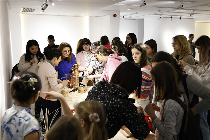 羅馬尼亞觀眾體驗(yàn)安溪竹藤編技藝。布加勒斯特中國文化中心供圖