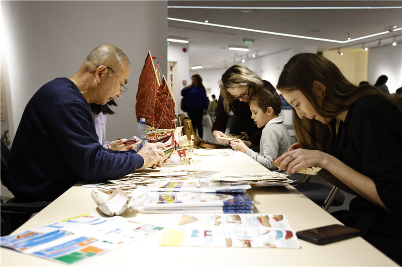 中國泉州非遺大師現(xiàn)場指導(dǎo)制作水密隔艙福船制造技藝。布加勒斯特中國文化中心供圖