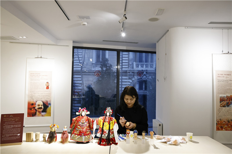 中國泉州的非遺大師制作江加走木偶頭雕刻。布加勒斯特中國文化中心供圖
