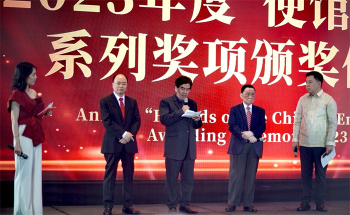 獲獎人員和團體代表發(fā)表獲獎感言。中國駐菲律賓使館供圖