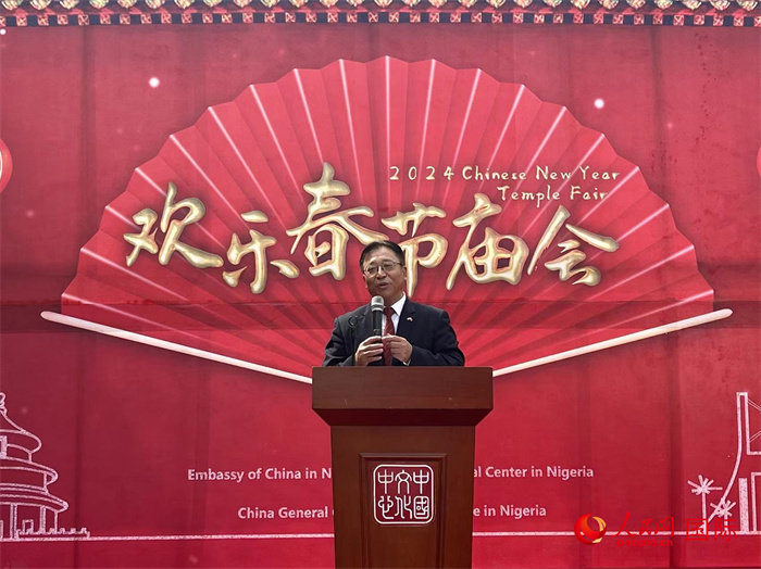 中國駐尼日利亞大使崔建春致“歡樂春節(jié)廟會”開幕詞。人民網(wǎng)記者 姜宣攝