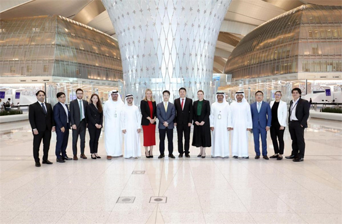 阿布扎比—??谑缀胶桨鄼C組合影。海南航空供圖