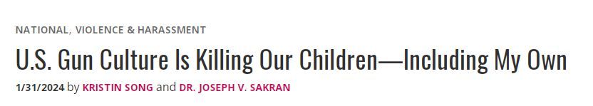 文章的作者之一克莉絲汀·桑(Kristin Song)的兒子伊桑就是這場“戰(zhàn)爭”的犧牲品。6年前,伊桑在他最好的朋友家里中槍,他朋友的父親將3把手槍和子彈存放在家中的一個(gè)鞋盒里。后來克莉絲汀還了解到,伊桑的朋友從小就和槍一起長大,那個(gè)時(shí)候也剛通過了全美步槍協(xié)會(huì)(NRA)的課程。6個(gè)多月以來,他經(jīng)常給只有十幾歲的朋友們展示沒有被家人妥善保存的槍支。