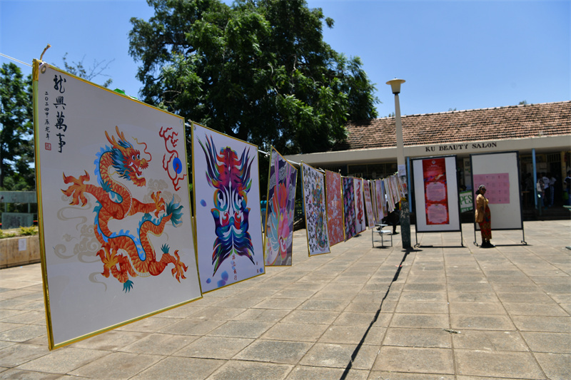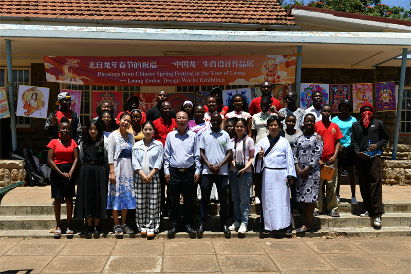 人民網(wǎng)內(nèi)羅畢2月15日電 (記者黃煒鑫)“來自龍年春節(jié)的祝?!袊?guó)龍’生肖設(shè)計(jì)作品展”15日在肯尼亞肯雅塔大學(xué)舉行。