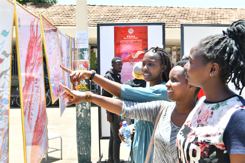 | 肯雅塔大學(xué)學(xué)生觀看展覽。肯雅塔大學(xué)孔子學(xué)院供圖 |
