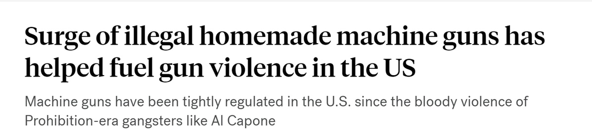 據(jù)報(bào)道,由于3D打印制作或在線購買的小型金屬或塑料零件的驚人增長,全美各地近年來都出現(xiàn)了使用經(jīng)改裝的全自動(dòng)槍支制造的槍擊事件。盡管針對(duì)機(jī)槍的禁令可以追溯到上世紀(jì)二三十年代的禁酒令時(shí)期,但有關(guān)部門表示,格洛克開關(guān)、連發(fā)阻鐵等改裝零件的大量增加,使得普通人能夠?qū)⒑戏ǖ陌胱詣?dòng)槍支改裝得更加危險(xiǎn),進(jìn)而助長了槍支暴力。