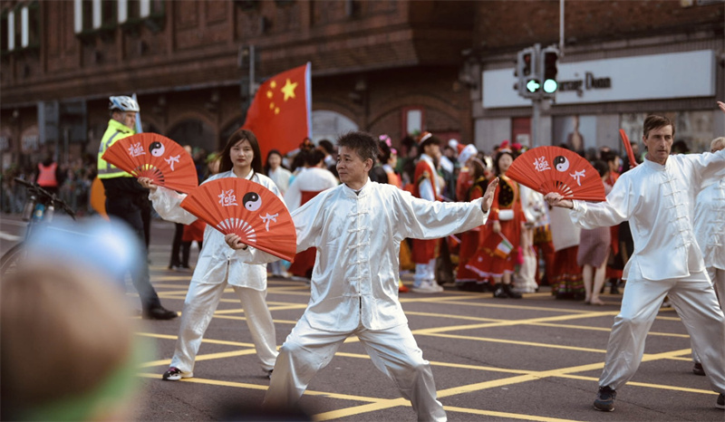 科克大學(xué)孔子學(xué)院攜手華僑華人、中國留學(xué)生等150余人,共同組織了一支獨(dú)具中國特色的游行方隊(duì)。隊(duì)伍的最前端是兩名旗手執(zhí)中愛兩國國旗,象征著中愛兩國的友誼長存,太極功夫扇展示了中國傳統(tǒng)武術(shù)的力與美,少數(shù)民族服裝、傳統(tǒng)漢服、戲曲服飾等等展示了中國豐富多彩的風(fēng)情與文化底蘊(yùn)??瓶舜髮W(xué)的精彩展示獲得了由科克市政府頒發(fā)的最佳組織獎。