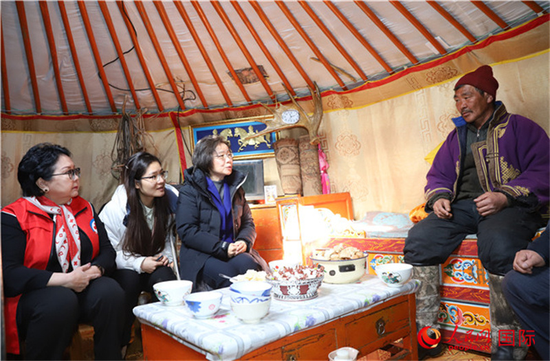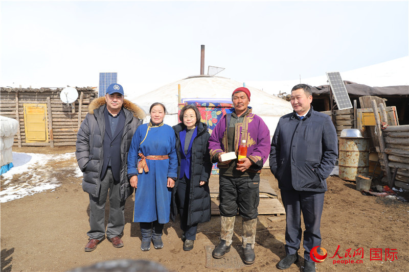 3月18日,沈敏娟走訪中央省額爾登縣牧民恩赫巴雅爾家。人民網(wǎng)記者 霍文攝