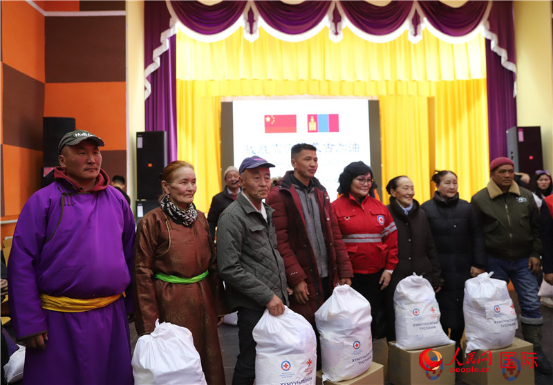 3月18日,向受災(zāi)牧民分發(fā)中方賑災(zāi)物資現(xiàn)場。人民網(wǎng)記者 霍文攝