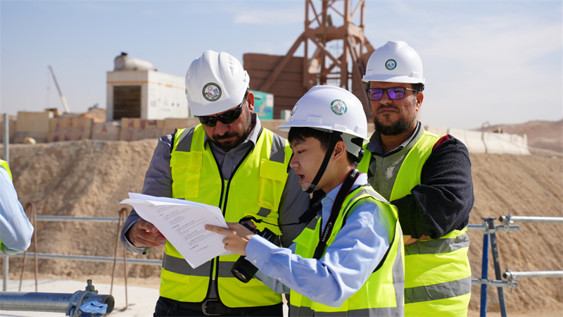 中外員工在現(xiàn)場(chǎng)交流。中建中東公司供圖