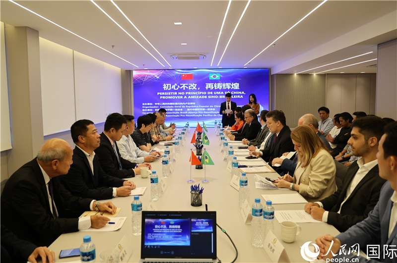 人民網(wǎng)里約熱內(nèi)盧5月19日電 (記者陳一鳴、時(shí)元皓)日前,由中國駐里約熱內(nèi)盧總領(lǐng)館主辦的“初心不改,再鑄輝煌”主題座談會(huì)在巴西中國和平統(tǒng)一促進(jìn)會(huì)會(huì)館舉行。中國駐里約熱內(nèi)盧總領(lǐng)事田敏出席座談會(huì)并致辭,里約州議會(huì)及州政府代表、中巴友好機(jī)構(gòu)代表、巴西學(xué)者代表、領(lǐng)區(qū)僑團(tuán)負(fù)責(zé)人、新聞機(jī)構(gòu)代表等中巴各界40余人參加?;顒?dòng)由巴西中國和平統(tǒng)一促進(jìn)會(huì)和巴西里約中國和平統(tǒng)一促進(jìn)會(huì)協(xié)辦。