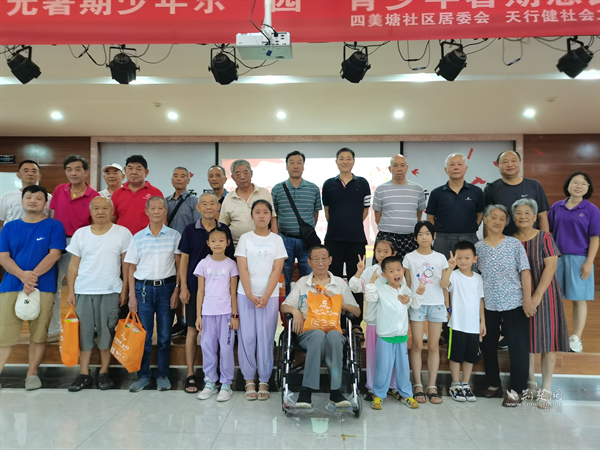四美塘社區(qū)在楊園街眾成頤家養(yǎng)老服務(wù)中心五樓舉辦了一場(chǎng)別開(kāi)生面的建軍節(jié)活動(dòng)。楊園教育學(xué)院民樂(lè)團(tuán)、管樂(lè)團(tuán)的團(tuán)長(zhǎng)同時(shí)也是退伍老兵的楊寶明給現(xiàn)場(chǎng)參與者帶來(lái)原創(chuàng)詩(shī)歌朗誦表演。退伍軍人為孩子們講解了國(guó)防軍事相關(guān)知識(shí),并分享了自己的參軍經(jīng)歷?;?dòng)游戲“團(tuán)結(jié)大作戰(zhàn)”環(huán)節(jié)中,孩子們與退役軍人分組合作,共同完成了筷子疊杯子的挑戰(zhàn),在陣陣歡笑中,進(jìn)一步增進(jìn)了轄區(qū)退役軍人之間的聯(lián)系,也在孩子們心中播下了愛(ài)國(guó)擁軍的種子。