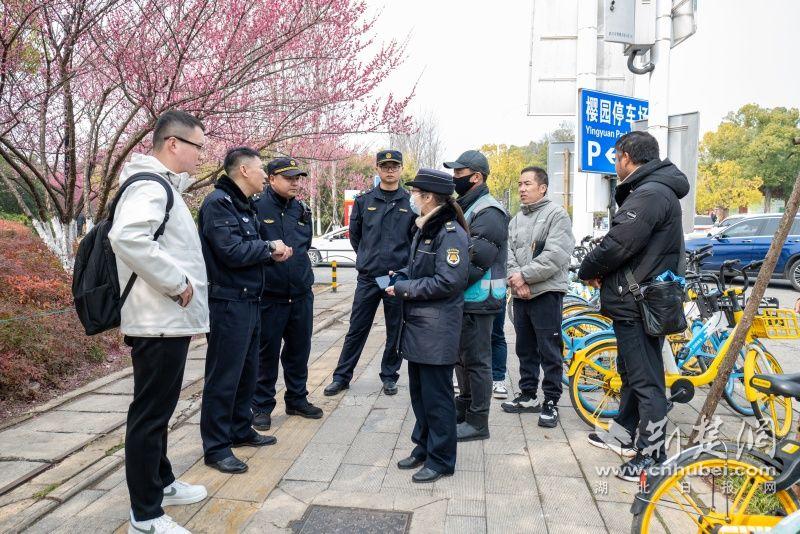 為了營造良好的賞櫻環(huán)境,更好服務(wù)市民游客,東湖風景區(qū)聚焦櫻園游客體驗和交通痛點問題,多次開展現(xiàn)場“馬路辦公”,圍繞訪梅路、植物園路、梅園東停車場周邊環(huán)境、交通秩序、共享單車等問題“問診開藥”,聯(lián)動開展集中整治。
