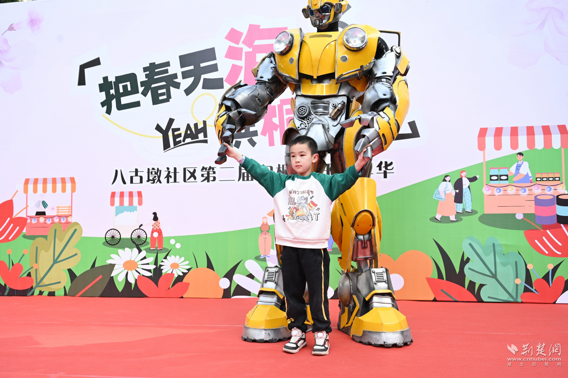 全民共建聚合力?;顒?dòng)籌備階段,社區(qū)黨委充分發(fā)揮居民議事會(huì)作用,發(fā)動(dòng)30余名居民志愿者成立策展專班。轄區(qū)居民羅先生主動(dòng)請(qǐng)纓,免費(fèi)贊助大黃蜂機(jī)器人、小丑巡游等氛圍裝置,并與社區(qū)文藝團(tuán)隊(duì)自編自演的5支主題舞蹈形成創(chuàng)意碰撞。當(dāng)三米高的炫酷機(jī)器人牽手小丑姑娘巡游時(shí),現(xiàn)場(chǎng)瞬間化作歡樂(lè)海洋,居民們爭(zhēng)相與巡游隊(duì)伍合影,自發(fā)在朋友圈發(fā)起“泡桐花下的奇遇”話題互動(dòng),活動(dòng)未半已收獲上百人次線上傳播。