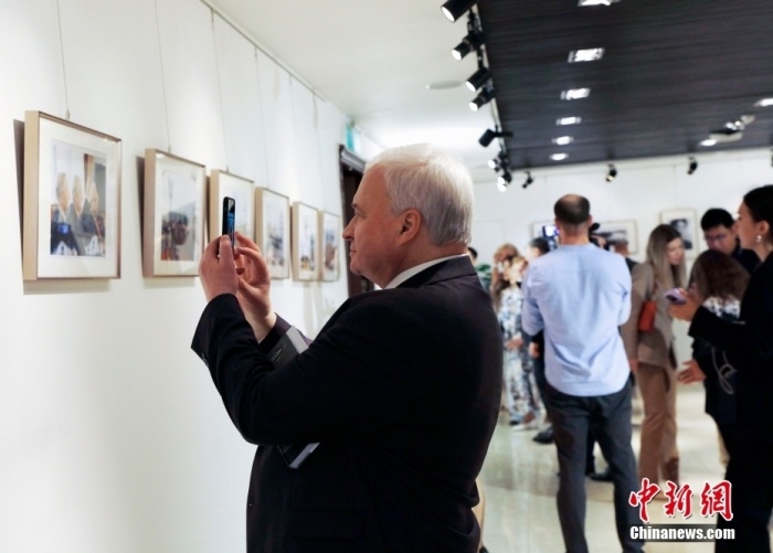 當(dāng)?shù)貢r(shí)間6月5日,紀(jì)念中國(guó)人民抗日戰(zhàn)爭(zhēng)暨世界反法西斯戰(zhàn)爭(zhēng)勝利80周年圖片展在莫斯科舉行。此次展覽共展出照片60幅,著重反映中國(guó)、蘇聯(lián)為世界反法西斯戰(zhàn)爭(zhēng)勝利作出的重要貢獻(xiàn),以及中俄兩國(guó)近年來在軍事、文化和人文等領(lǐng)域的交流與合作。圖為俄聯(lián)邦委員會(huì)國(guó)際事務(wù)委員會(huì)第一副主席、俄羅斯前駐華大使杰尼索夫參觀圖片展。中新社記者 田冰 攝