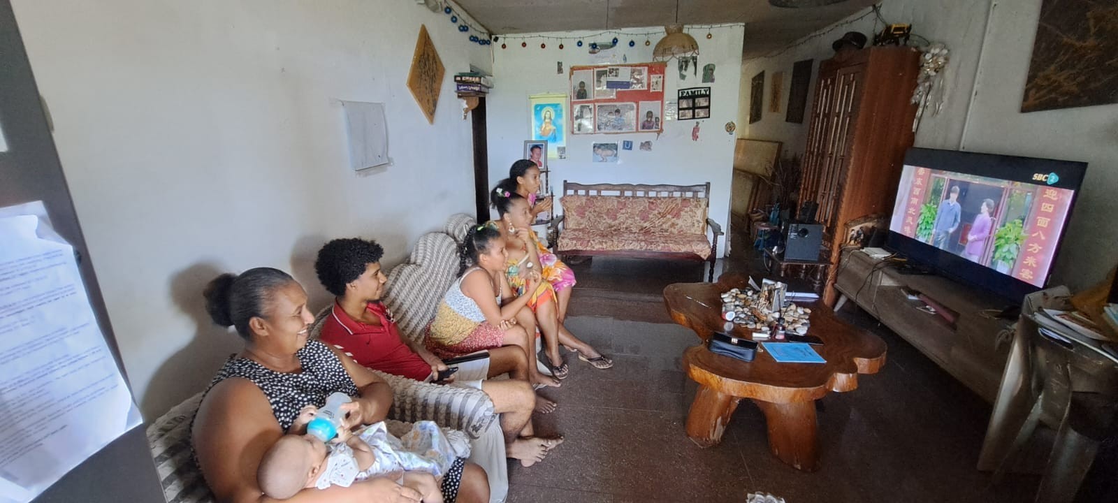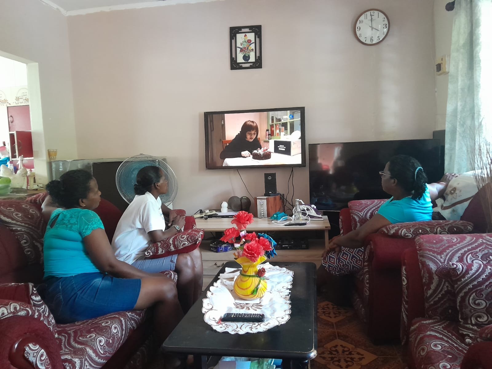 塞舌爾民眾在家中觀看中國(guó)電視劇。中國(guó)駐塞舌爾大使館供圖