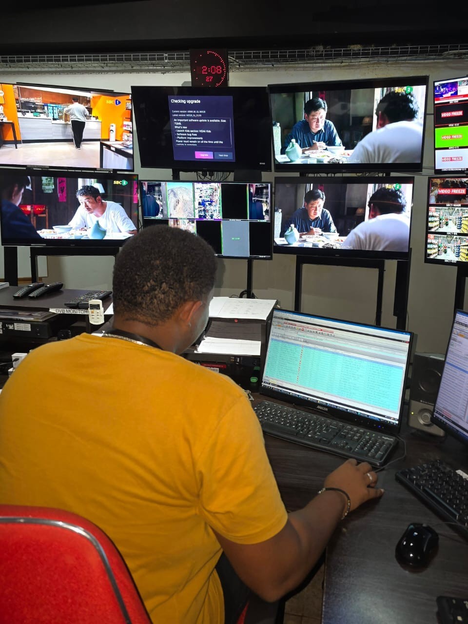 塞舌爾廣播電視臺(tái)工作人員在播放中國(guó)電視劇《大江大河》。中國(guó)駐塞舌爾大使館供圖