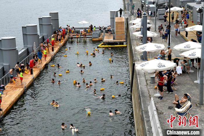 當(dāng)?shù)貢r(shí)間7月5日,法國巴黎時(shí)隔百余年恢復(fù)開放塞納河公眾游泳。圖為民眾在河中一處對(duì)外開放的公共區(qū)域內(nèi)游泳。中新社記者 李洋 攝