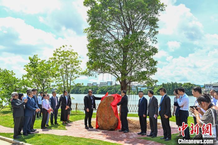 7月8日,廣東江門(mén),瑙魯總統(tǒng)戴維·阿迪昂親手植下一棵象征家族根脈的榕樹(shù)。中新社記者 陳驥旻 攝