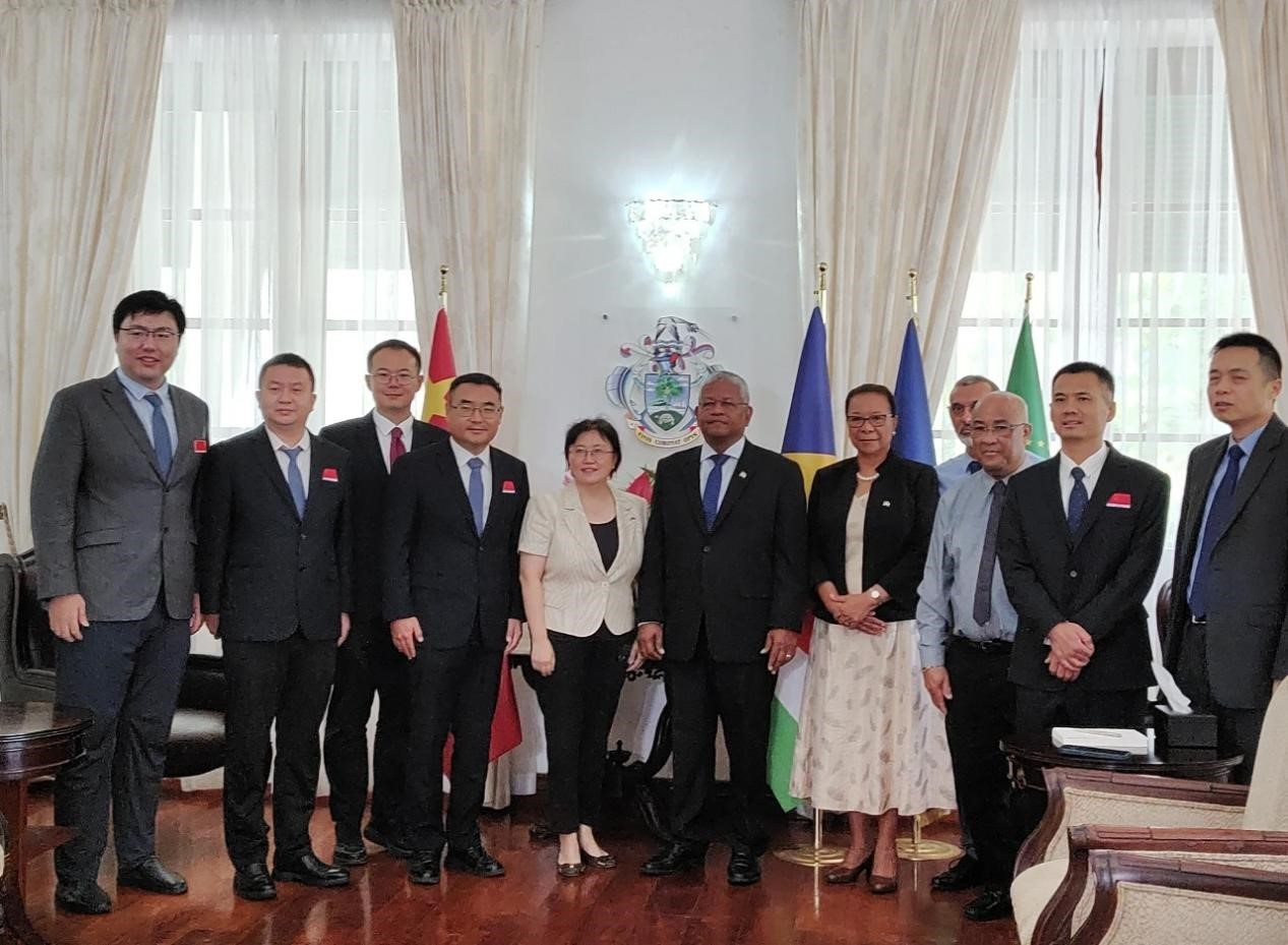 塞舌爾總統(tǒng)拉姆卡拉旺在首都維多利亞接見中國第19批援塞醫(yī)療隊。醫(yī)療隊供圖