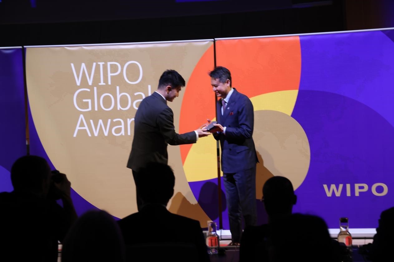 世界知識產(chǎn)權(quán)組織總干事鄧鴻森向宇樹科技代表頒獎。人民網(wǎng)記者 劉仲華攝