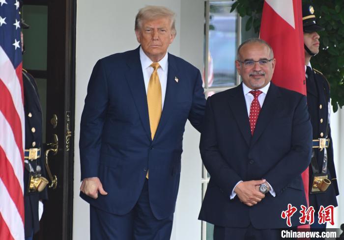 7月16日,美國(guó)總統(tǒng)特朗普在白宮會(huì)見(jiàn)巴林王儲(chǔ)兼首相薩勒曼。(資料圖)中新社記者 陳孟統(tǒng) 攝