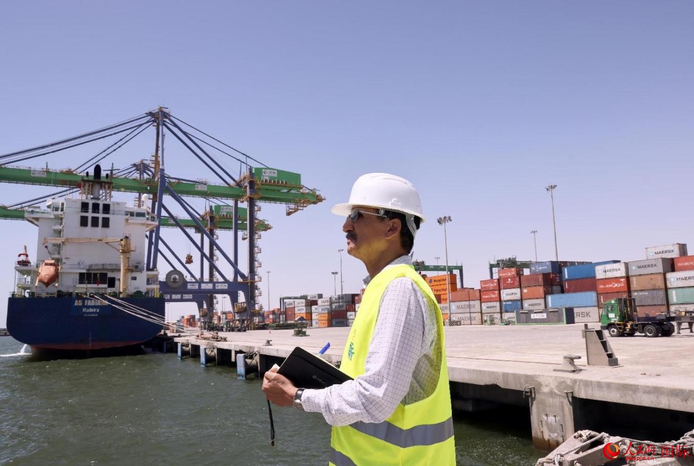 友誼港港務局局長技術顧問費薩爾在現(xiàn)場巡視。人民網記者 管克江攝