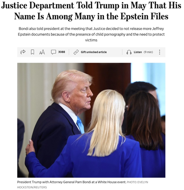 《華爾街日報(bào)》報(bào)道,司法部告知特朗普,“愛潑斯坦”檔案中有他的名字