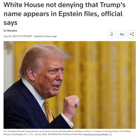 當(dāng)?shù)貢r(shí)間7月23日,美國政壇再次被愛潑斯坦案引爆的余波所震動:一方面,總統(tǒng)特朗普的名字被曝多次出現(xiàn)在最新公開的法院檔案中;另一方面,眾議院突然提前進(jìn)入8月休會期,引發(fā)輿論對“客戶名單”透明進(jìn)程遭政治阻斷的廣泛質(zhì)疑。