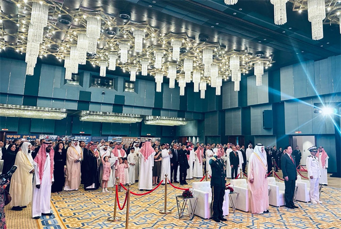 國防武官祝捷在致辭中說,中國軍隊誕生于中國人民爭取國家獨立、民族富強的斗爭中,在中國共產(chǎn)黨領(lǐng)導(dǎo)下走過98年的光輝戰(zhàn)斗歷程。近年來,中沙兩國領(lǐng)導(dǎo)人擘畫引領(lǐng)中沙全面戰(zhàn)略伙伴關(guān)系、防務(wù)安全戰(zhàn)略合作升級發(fā)展。當(dāng)前,世界正經(jīng)歷歷史性深刻變化,中沙同為具全球和地區(qū)影響力的負(fù)責(zé)任大國,雙邊防務(wù)安全合作將邁向更高水平。