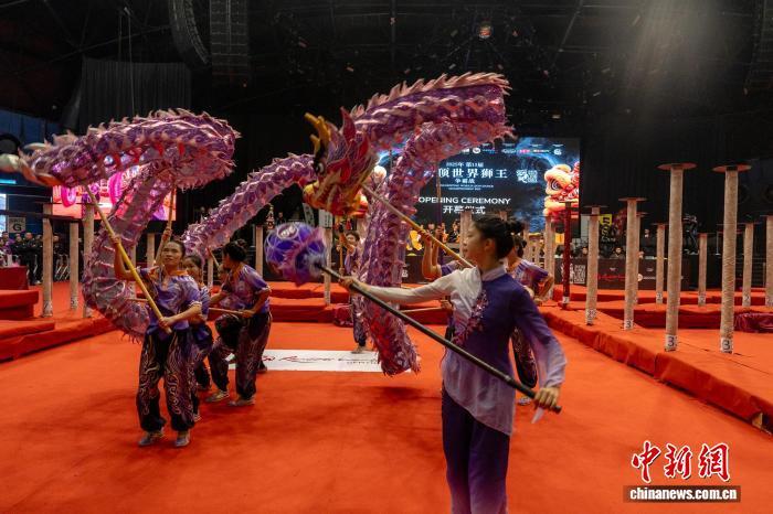 來自廣西師范大學(xué)龍獅隊(duì)的“全女班”隊(duì)員獻(xiàn)上精彩開場表演。 記者 陳悅 攝