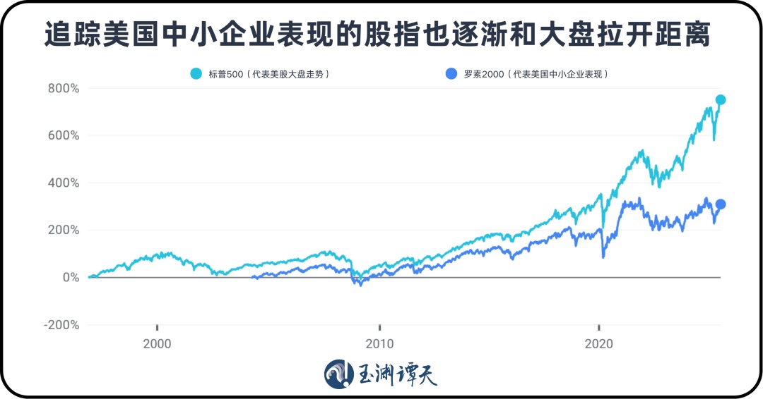 作為追蹤美國中小企業(yè)表現(xiàn)的重要風(fēng)向標,羅素2000指數(shù)也逐漸和美股大盤拉開了距離。自美國新一屆政府上臺至7月24日,羅素2000下跌2.84%,與標普500指數(shù)之間相差超過7個百分點。