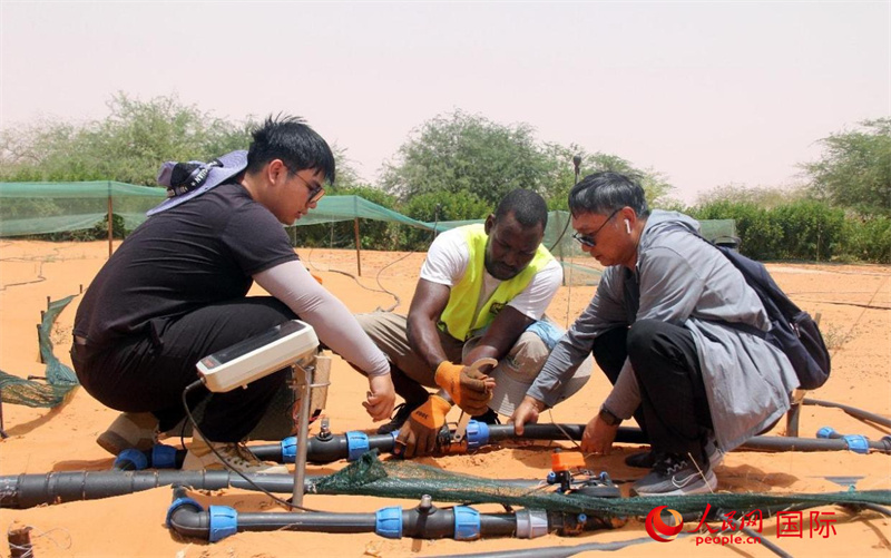 灌溉技術工人穆罕默德·伊塞勒穆蹲在沙地里,熟練地更換著電磁閥智能控制噴淋閥門組件——這是他去年就已經(jīng)掌握的技能。他說:“中國的同事們來自中國的新疆,當?shù)刈匀画h(huán)境和我們這里近似。有中國同事的幫助,我相信這里一定能發(fā)展起綠色種植。”