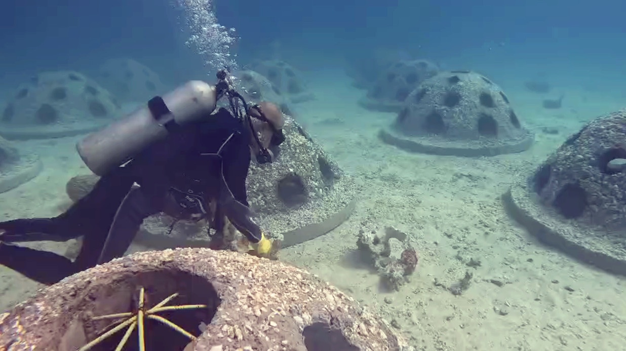 為了保護(hù)紅海地區(qū)的珊瑚礁生態(tài)系統(tǒng),紅海全球公司一直會(huì)同多方合作伙伴探索珊瑚礁移植和修復(fù)方法。中國(guó)港灣創(chuàng)新設(shè)計(jì)的“珊瑚小屋”直徑有兩米,內(nèi)部采用環(huán)氧樹脂增強(qiáng)鋼筋骨架,表層用硅酸巖及藻類提取物手工精塑外敷涂層,為珊瑚生長(zhǎng)提供了理想基質(zhì)。開設(shè)的“窗戶”模擬真實(shí)珊瑚礁生態(tài)環(huán)境,便于海洋生物自由出入小屋。