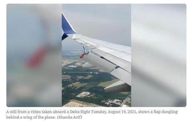 據(jù)報(bào)道,這架達(dá)美航空1893號(hào)航班當(dāng)天從奧蘭多國(guó)際機(jī)場(chǎng)飛往奧斯汀-伯格斯特羅姆國(guó)際機(jī)場(chǎng),飛行途中乘客們注意到機(jī)翼后部有部分結(jié)構(gòu)已經(jīng)斷裂。