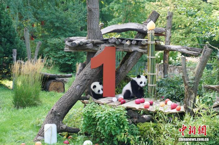 當(dāng)?shù)貢r(shí)間8月22日,旅德大熊貓雙胞胎“夢(mèng)好”和“夢(mèng)甜”在柏林動(dòng)物園歡度一周歲生日。圖為“夢(mèng)好”和“夢(mèng)甜”在玩耍。中新社記者 馬秀秀 攝