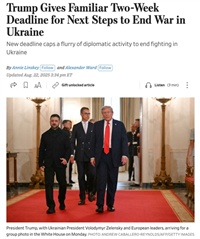 輿論認為,這是特朗普熟悉的“計時器外交”?!度A爾街日報》稱其為“熟悉的兩周期限”:把一段明確的期限公開化,同時把“我給過機會”的敘事擺上臺面,以時間倒逼談判各方,也為后續(xù)政策加碼預熱。阿拉斯加會晤沒有產(chǎn)出可執(zhí)行的?;鸹蛉綍姘才?,倒計時的設置相當于把責任前置公開——若兩周后沒有實質(zhì)動靜,升級就更容易獲得政治上的正當性。