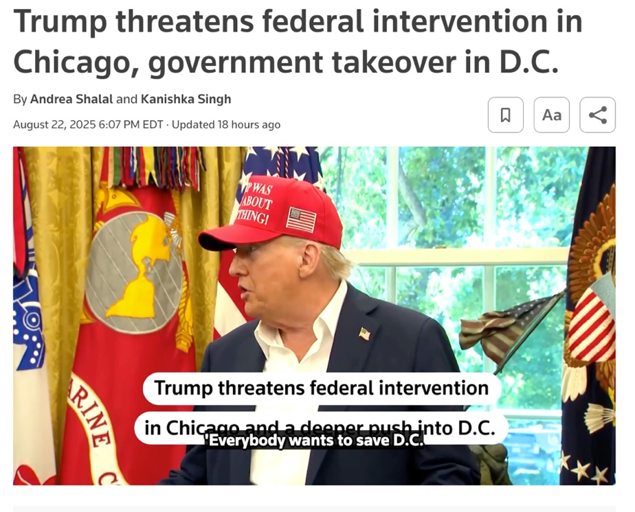 當?shù)貢r間8月22日,美國總統(tǒng)特朗普表示,不排除宣布進入國家緊急狀態(tài)的可能,并強調,如有必要,將對目前華盛頓特區(qū)的30天聯(lián)邦管控進行延長,同時點名芝加哥和紐約,批評這兩座城市“一片混亂”,暗示可能采取類似措施。此番表態(tài)迅速在美國社會引發(fā)爭議與震動。
