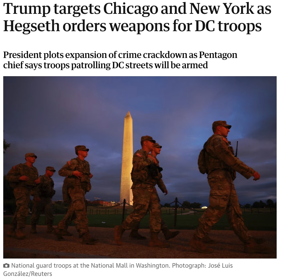 △《衛(wèi)報》報道,特朗普表示不排除宣布進入國家緊急狀態(tài)的可能,并點名芝加哥和紐約“一片混亂”,表示芝加哥是下一個目標。