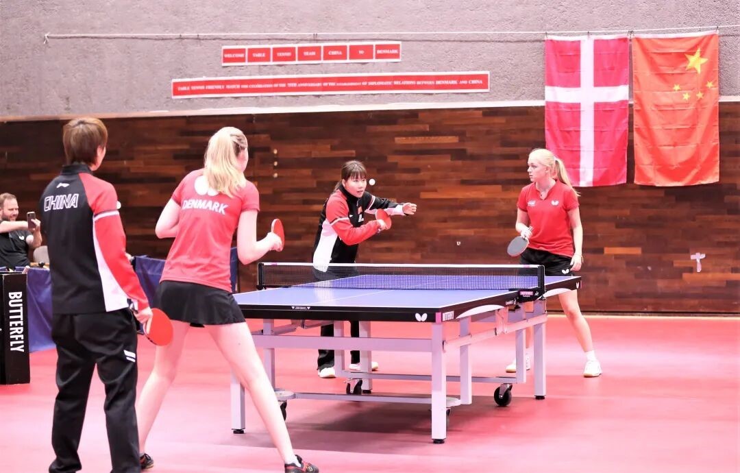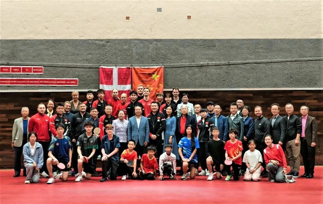 中丹乒乓球運(yùn)動(dòng)員交流互動(dòng)。中國(guó)駐丹麥大使館供圖