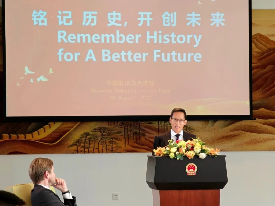 人民網(wǎng)斯德哥爾摩8月29日電(記者殷淼)當(dāng)?shù)貢r(shí)間8月28日,中國駐冰島使館舉辦“銘記歷史、開創(chuàng)未來”座談會、《里斯本丸沉沒》在冰首映式及酒會。中國駐冰島大使何儒龍和國際儒學(xué)聯(lián)合會副理事長鮑德松出席并致辭,冰外交部、冰中文協(xié)、冰中貿(mào)協(xié)、華僑華人及留學(xué)生等近百人出席。