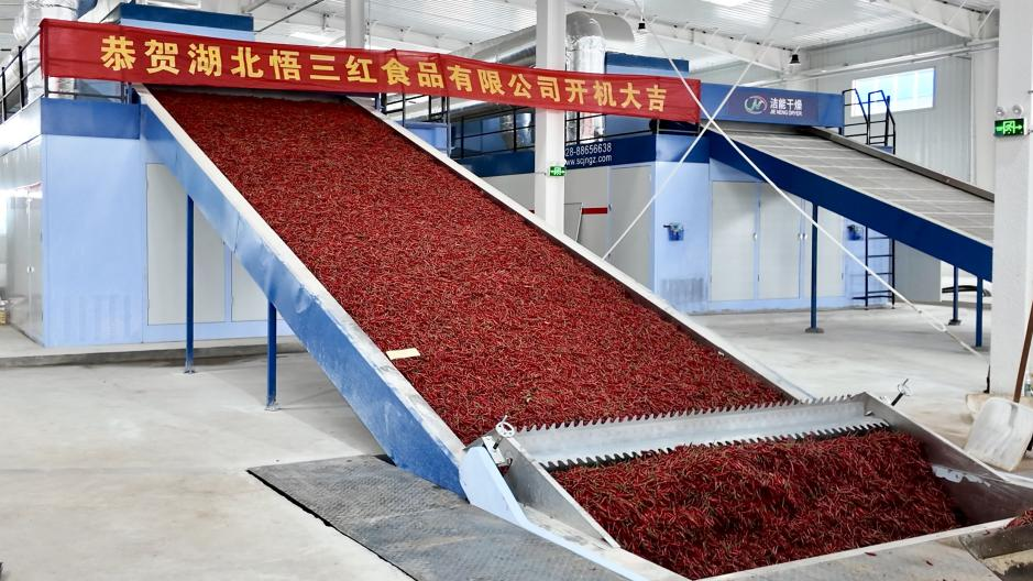 這座今年正式投產(chǎn)、扎根田間地頭的辣椒烘干廠,正以其獨特的“紅火”勢頭,成為推動當?shù)剜l(xiāng)村產(chǎn)業(yè)振興、帶動農(nóng)民增收的新引擎。烘干廠配備了2條中國第六代智能節(jié)能辣椒烘干生產(chǎn)線,滿負荷運轉(zhuǎn)可日烘鮮椒20萬斤,年加工量超過3萬噸。通過精準的溫濕度控制技術(shù),工廠能在短時間內(nèi)將鮮椒高效烘干至標準含水量,極大提升了本地辣椒的附加值,有效解決了鮮椒集中上市時面臨的銷售難、儲存難問題,讓豐店鎮(zhèn)及周邊地區(qū)的辣椒種植戶吃下了“定心丸”。它不僅延伸了辣椒產(chǎn)業(yè)鏈條,更將季節(jié)性農(nóng)產(chǎn)品轉(zhuǎn)化為具有更高價值和更長貨架期的商品。