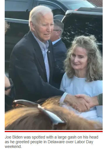 報道稱,社交媒體上流傳的一段畫面顯示,現(xiàn)年82歲的拜登顯得虛弱,額頭有一道明顯的紅色傷口,部分被白發(fā)遮蓋。
