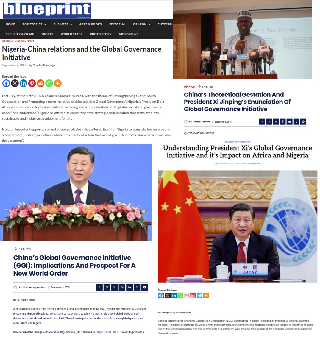 人民網(wǎng)阿布賈9月8日電(記者姜宣)近日,尼日利亞中國研究中心主任查爾斯、阿布賈大學政治學與國際關系教授謝里夫、資深媒體人馬霍和薩萊相繼在尼主流媒體分別發(fā)表題為《尼中關系和全球治理倡議》《中國的理論孕育與習近平主席對全球治理倡議的闡述》《中國的全球治理倡議:對新世界秩序的意義與前景》《理解習近平主席的全球治理倡議及其對非洲和尼日利亞的影響》的署名文章,從不同角度積極評價習近平主席提出的全球治理倡議。