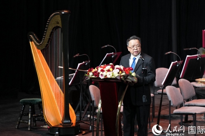 中國駐菲律賓大使黃溪連在音樂會(huì)開幕式上發(fā)表致辭。人民網(wǎng)記者 樊帆攝