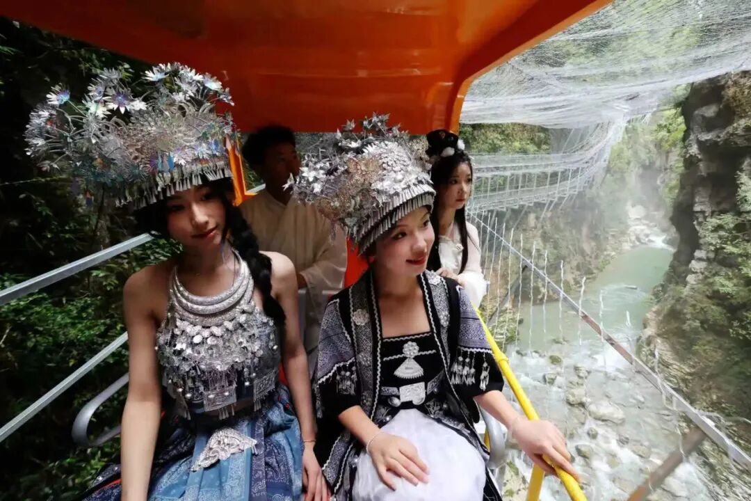 懸崖列車(chē)將帶您沿著險(xiǎn)峻崖壁穿行,感受"車(chē)在崖上走,人在畫(huà)中游"的絕妙意境。