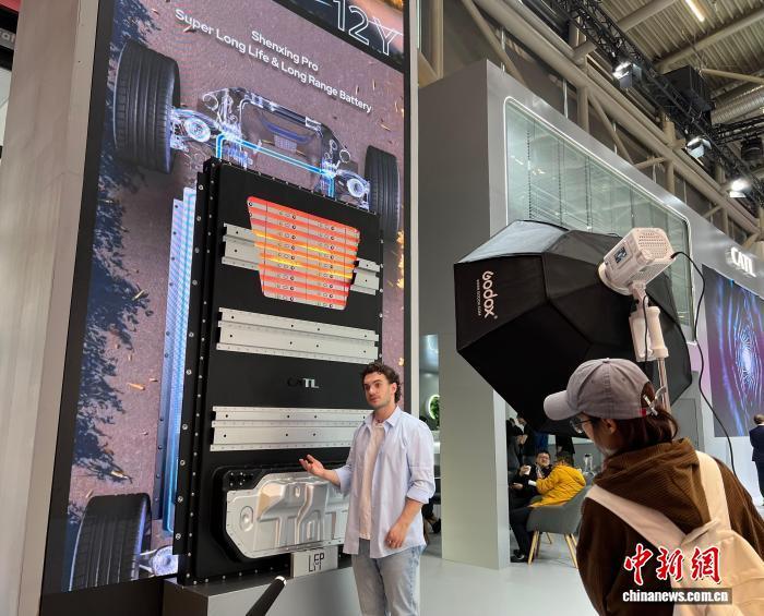 當(dāng)?shù)貢r(shí)間9月8日,2025年德國(guó)慕尼黑國(guó)際車(chē)展舉行媒體日。圖為寧德時(shí)代神行Pro電池引關(guān)注。中新社記者 馬秀秀 攝