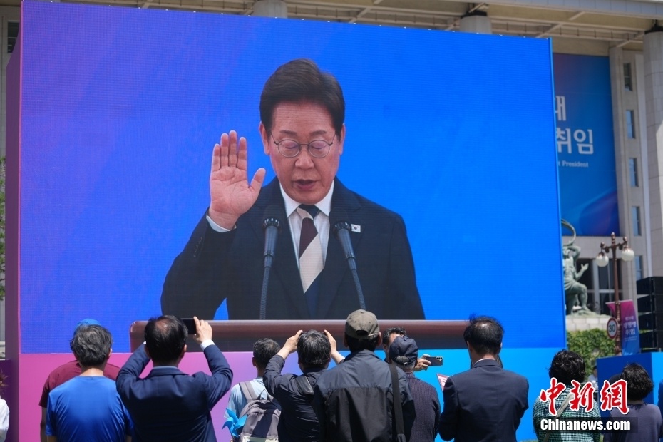 當?shù)貢r間6月4日,民眾在韓國首爾汝矣島國會廣場通過大屏幕觀看總統(tǒng)李在明就職儀式。中新社記者 劉旭 攝