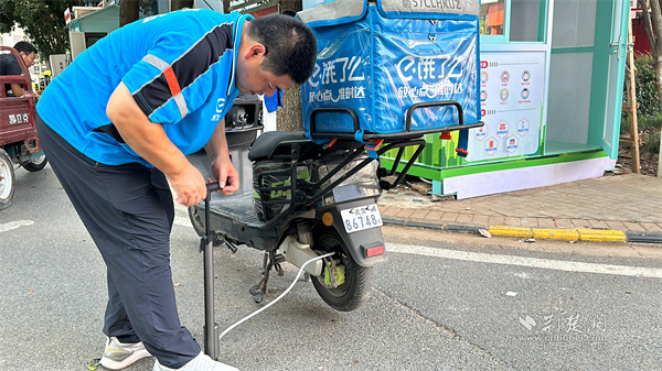 社區(qū)在北大門入口處設(shè)立的“暖心補(bǔ)給站”,成了小哥們的“能量加油站”。拉開補(bǔ)給站的冰柜,冰爽的礦泉水整齊擺放;醫(yī)藥箱里,創(chuàng)可貼、碘伏、藿香正氣水等應(yīng)急藥品一應(yīng)俱全;維修工具箱和電動(dòng)打氣筒已幫十多位小哥解決過(guò)電動(dòng)車爆胎、零件松動(dòng)的難題;打包袋也方便了小哥臨時(shí)更換破損外賣包裝。“夏天送完餐,來(lái)這兒取瓶冰水,渾身的燥熱都散了,心里也涼快!”快遞小哥王師傅邊說(shuō)邊拿起一瓶水,臉上滿是滿足。